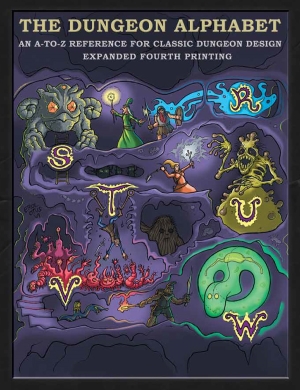 The Dungeon Alphabet is published by Goodman Games in hardcover and PDF. Cover art by Erol Otus looks great on the game shelf.