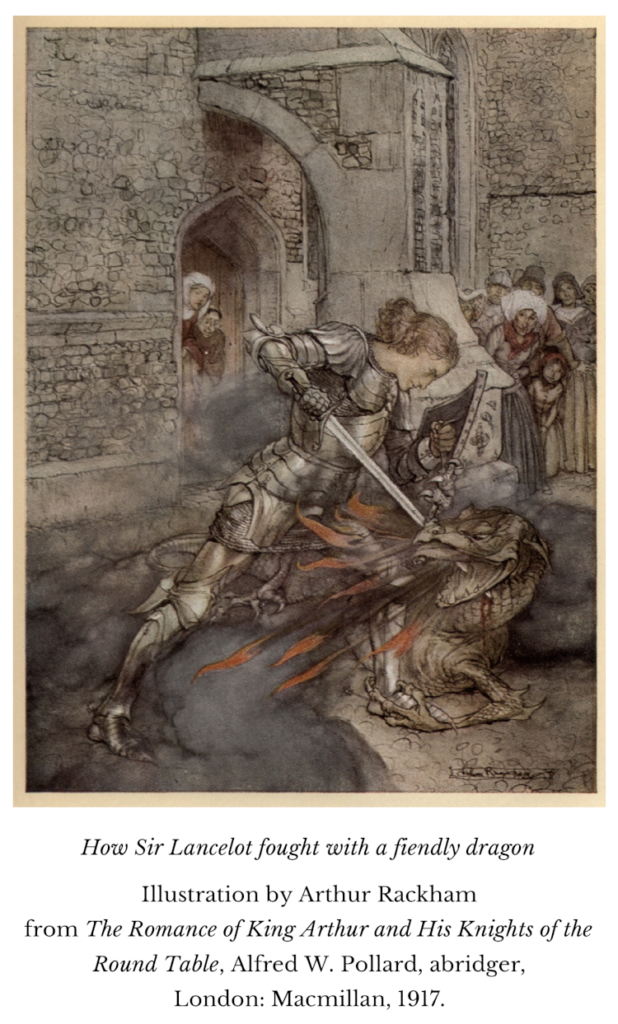 The first story of Littlelot recounts the adventure of the most renowned of all the Round Table knights, Lancelot, and his rescue of Gwenevere, drawn from Book VII of Le Morte d’Arthur. My own retelling differs from Malory’s in length as well as in certain details.
