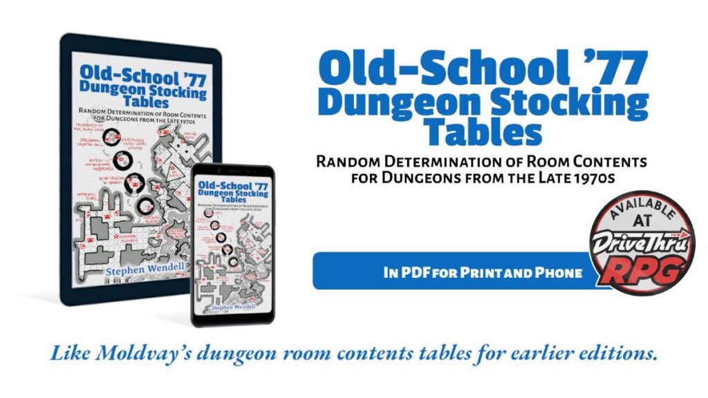 Old-School ’77 Dungeon Stocking Tables Now on DriveThruRPG Read Post »